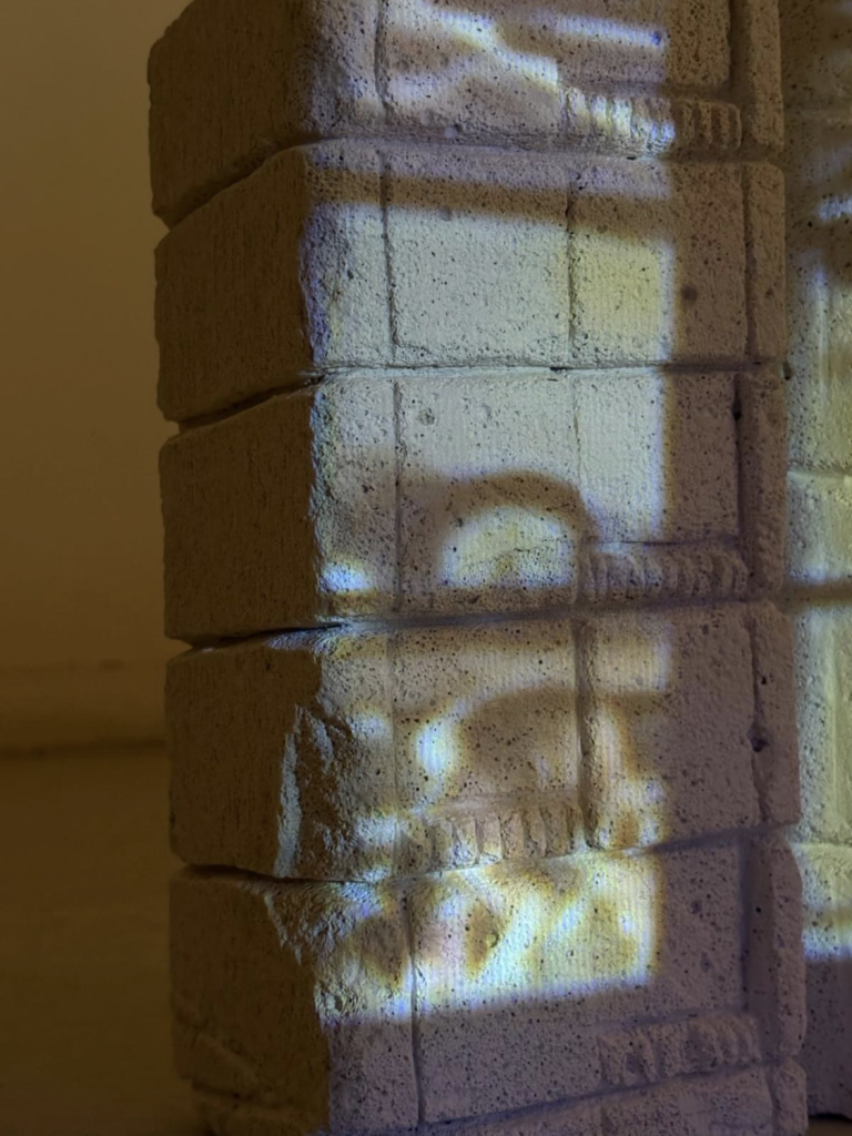 Bloc habité, bloc de béton cellulaire gravé avec vidéo-projection, dim. 31 x 25 x 10 cm / https://youtube.com/shorts/QoQXdkejgVY?is=HlX4a7YXhXYGeIFr