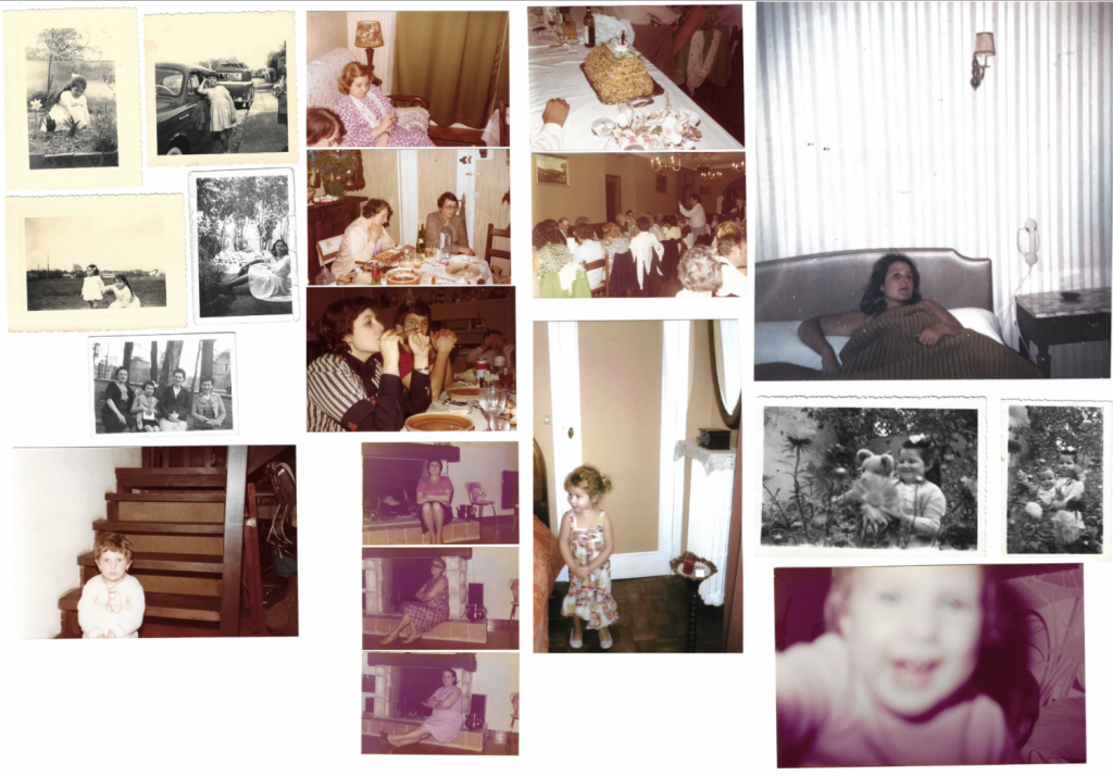 Mes mères, série (extrait) -scan de photographies d’archives, mur d’images (détail), dim. variables 120 x 180 cm