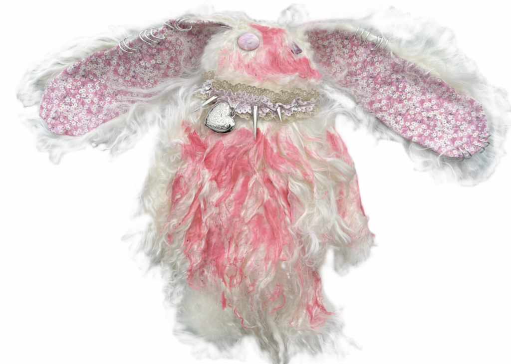 Peluche, fourrure de tapis, tissus, accessoires en métal, 40 x30 x 15 cm