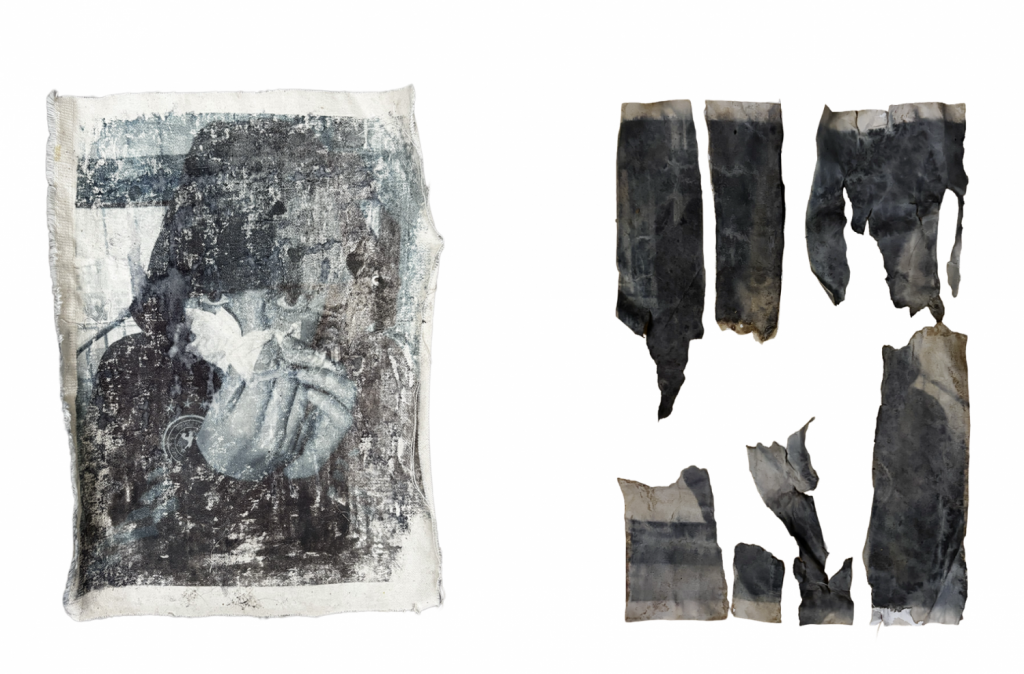 KSOS, transfert sur tissu brulé -étapes initiale et finale, 30 x 20 cm