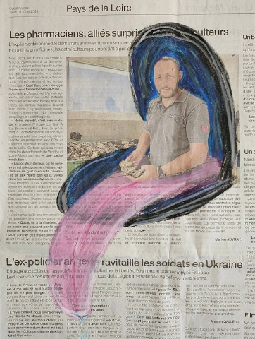 Avec des Si, série (extrait 2 / 10) -peinture acrylique et pastel gras sur feuille de papier journal, 50 x 40 cm /image ; ens. 200 x 245 cm