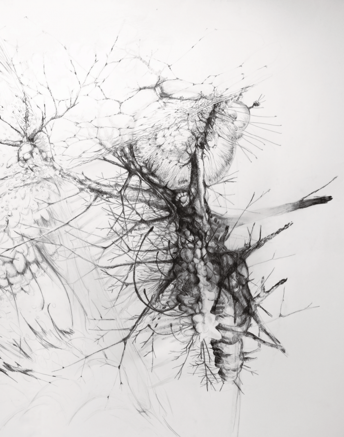 Surfaces, crayon graphite et fusain te sur papier, 156 x 198 cm